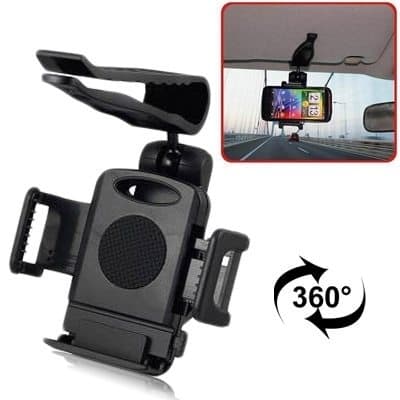 Universal solskyddshållare håller din mobil i ett säkert grepp. Med en lättmanövrerad axel hittar du enkelt rätt läge i höjdled, medan en roterbarhet på 360 grader gör det lätt att hitta rätt vinkel. Den snillrika klämman gör hållaren enkel att få fast på solskyddet. Med den smidiga knappen blir det lika enkelt att få loss telefonen eller surfplattan och med sitt robusta material tål hållaren oändligt många sådana losstagningar. Universal solskyddshållare passar: iPhone, iPod Touch, Samsung Galaxy SII i9100, Nexus i9250, Galaxy SIII i9300, HTC One X (S720e) / G22 /, Nokia Lumia 800 / 900 / N9, Sony Xperia S LT26i, GPS och annan mobil utrustning.