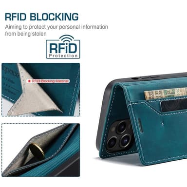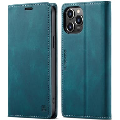 AUTSPACE A01 RFID Blocking Retro Plånboksfodral iPhone 13 Pro Max - Blå
