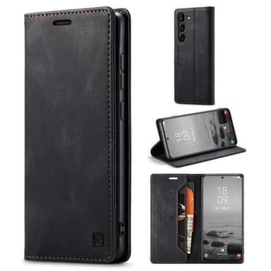 AUTSPACE A01-serien för Samsung Galaxy S23+ (Plus) RFID-blockerande Anti-dropp telefonfodral Retro Texture PU Läder Plånboksställ Matt Flip Telefonfodral - Svart