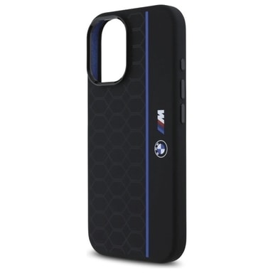 Förhöj din iPhone 16 med BMW exklusiva MagSafe-skal i elegant och tåligt silikon, designat för att skydda din enhet med stil. Det svarta skalet är prytt med ett unikt hexagonmönster och en subtil blå linje, vilket skapar en sofistikerad och sportig look som speglar BMW lyxiga estetik. MagSafe-kompatibiliteten gör det enkelt att ansluta till trådlösa laddare och andra MagSafe-tillbehör utan att ta bort skalet. Med perfekt passform och exakta utskärningar för knappar och portar är skalet både funktionellt och bekvämt att använda i vardagen.