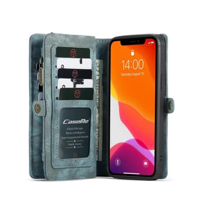 CASEME till iPhone 12 Pro Max Retro Split läder fodral / plånboksfodral flera fack - Blå