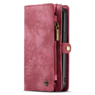 CASEME till iPhone 13 Retro Split läder fodral / plånboksfodral flera fack - Röd