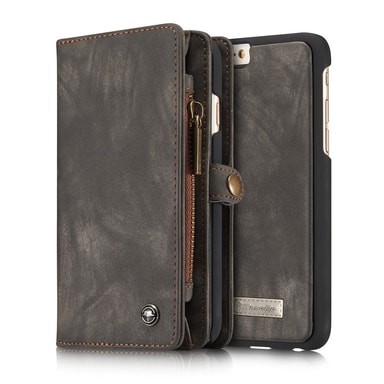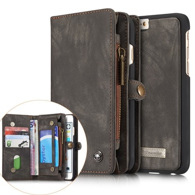 CASEME till iPhone 6s 6 Retro Split läder fodral / plånboksfodral flera fack - Grå