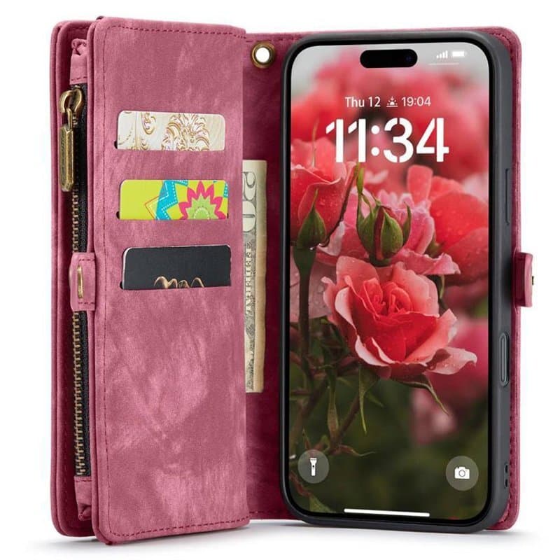 Elegant och praktisk mobilväska med plats för kreditkort, sedlar och mynt. Mobiltelefonen monteras i ett magnetiskt avtagbart mobilskal, vilket gör det enkelt att ta telefonen ur fodralet, perfekt för snabba samtal eller när man vill separera telefonen och mobilväskan. Dold magnetisk stängning håller fodralet stängt. Åtkomst till telefonens funktioner.