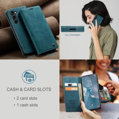 Detta CASEME-fodral har en enkel retrostil och en användarvänlig greppkonstruktion. Väl utvalt vintage PU-läder är slätt och smutsresistent. Ett justerbart hopfällbart stativ stöder din telefon i en bekväm betraktningsvinkel, vilket definitivt gör videotittandet roligare.