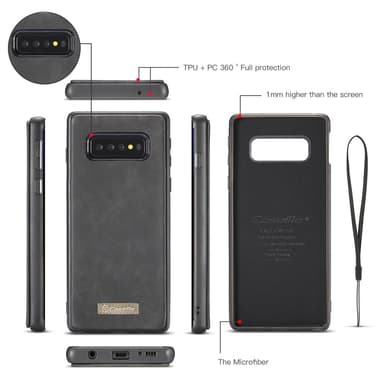 CASEME till Samsung Galaxy S10 Retro Split läder fodral / plånboksfodral flera fack - Svart