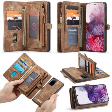 CASEME till Samsung Galaxy S20 Plus Retro Split läder fodral / plånboksfodral flera fack - Brun