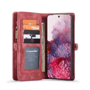 CASEME till Samsung Galaxy S20 Ultra Retro Split läder fodral / plånboksfodral flera fack - Röd