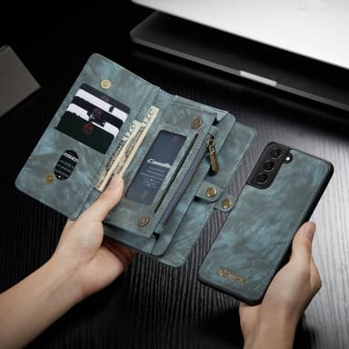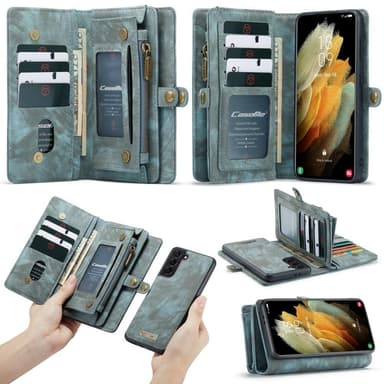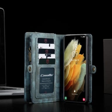 CASEME till Samsung Galaxy S21+ (Plus) Retro Split läder fodral / plånboksfodral flera fack - Blå