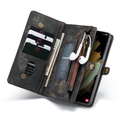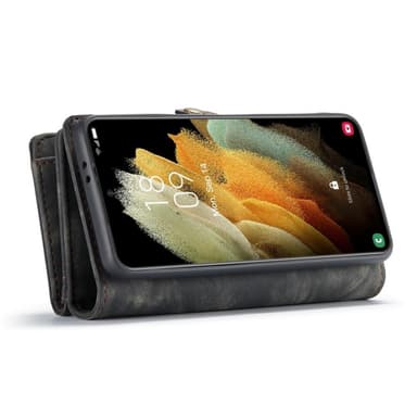 CASEME till Samsung Galaxy S21 Retro Split läder fodral / plånboksfodral flera fack - Grå/Svart