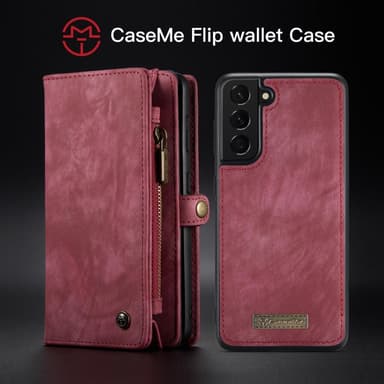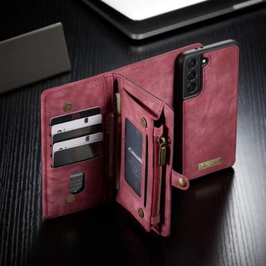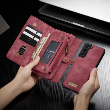 CASEME till Samsung Galaxy S21 Retro Split läder fodral / plånboksfodral flera fack - Röd