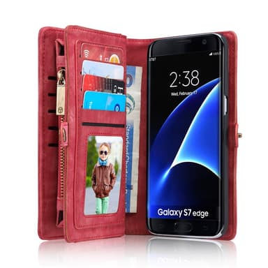 CASEME till Samsung Galaxy S7 Edge Retro Split läder fodral / plånboksfodral flera fack - Röd