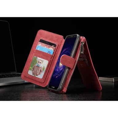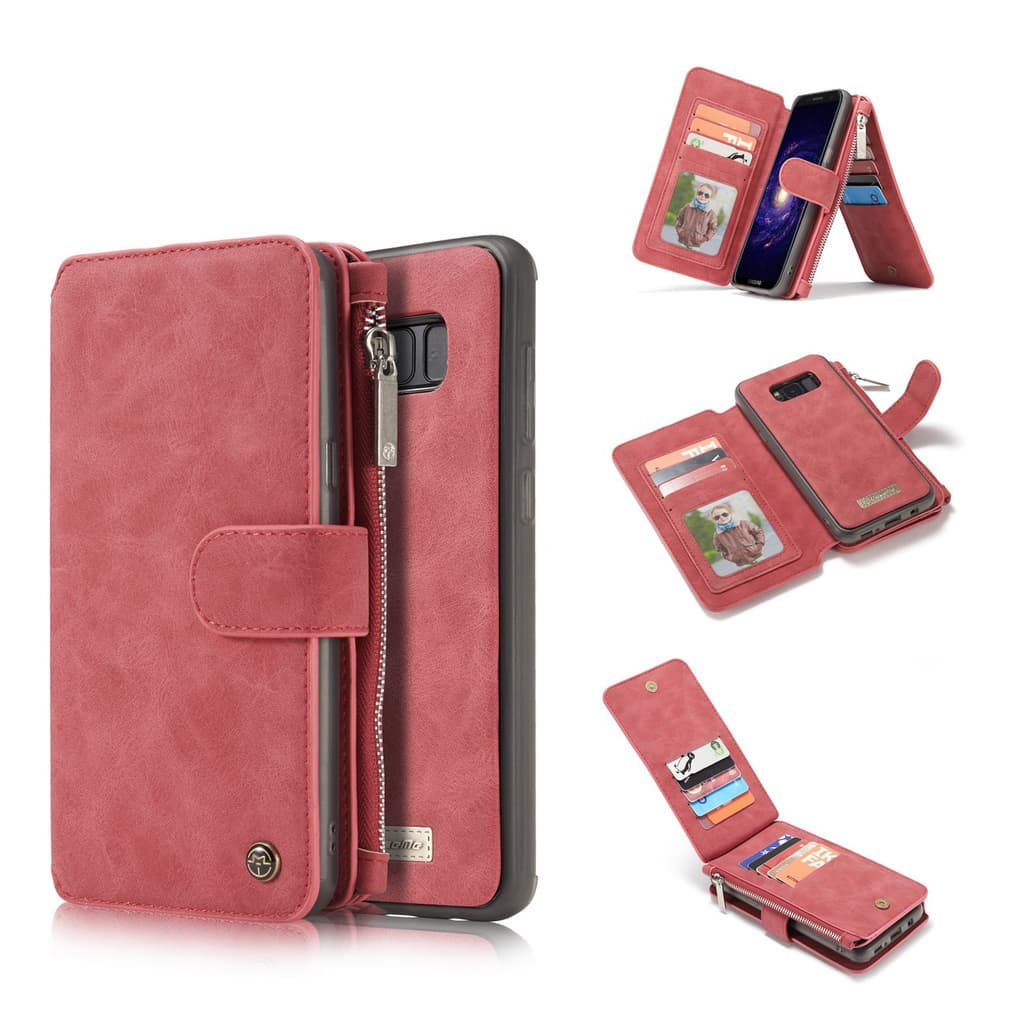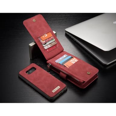 CASEME till Samsung Galaxy S8 Plus Retro Split läder fodral / plånboksfodral flera fack - Röd