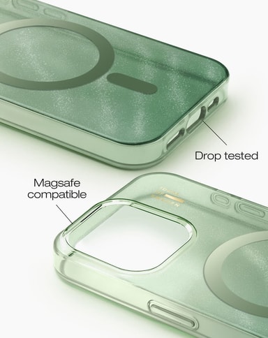 Lägg till en subtil glans med ett glittrigt skal med MagSafe-kompatibilitet