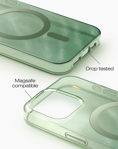 Lägg till en subtil glans med ett glittrigt skal med MagSafe-kompatibilitet