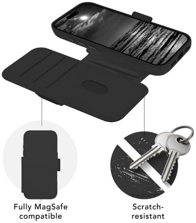 dbramante1928 Lynge MS ICON-fodral för iPhone 17 Pro är designat med en inbyggd MagSafe-magnet och ett avtagbart innerskal som snäpps på. Det förvandlas enkel från ett plånboksfodral till ett minimalistiskt läderfodral.Läs mer om produkten