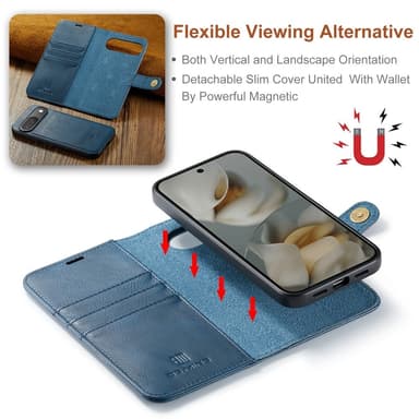 Detta 2-i-1 magnetiska fodral erbjuder både ett elegant läderfodral och ett robust PC-baksida. Använd dem tillsammans eller separat, beroende på behov. Det praktiska läderfodralet har plats för tre kort och sedlar. Den säkra stängningen skyddar dina värdesaker, medan den inbyggda ståfunktionen gör det enkelt att titta på videor. Du kan till och med prata med fodralet stängt tack vare den smarta främre utskärningen.