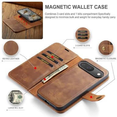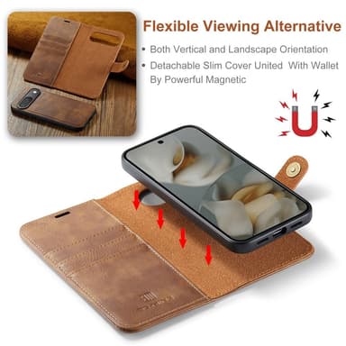 Detta 2-i-1 magnetiska fodral erbjuder både ett elegant läderfodral och ett robust PC-baksida. Använd dem tillsammans eller separat, beroende på behov. Det praktiska läderfodralet har plats för tre kort och sedlar. Den säkra stängningen skyddar dina värdesaker, medan den inbyggda ståfunktionen gör det enkelt att titta på videor. Du kan till och med prata med fodralet stängt tack vare den smarta främre utskärningen.