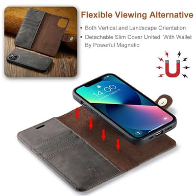 Ett plånboksfodral i läder med magnetiskt avtagbart innerskal.
