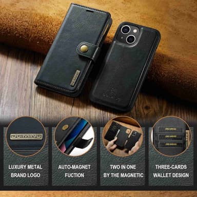 DG MING iPhone 14 Plus 2-i-1 Magnet Plånboksfodral - Svart