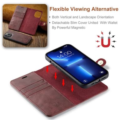 DG MING iPhone 14 Pro Max 2-i-1 Magnet Plånboksfodral - Röd