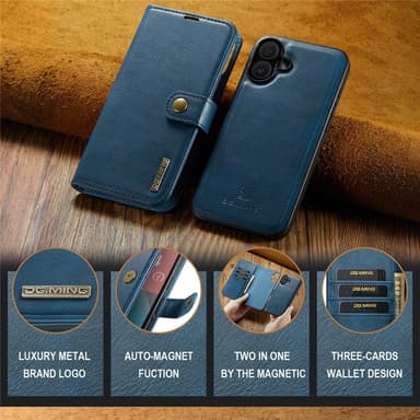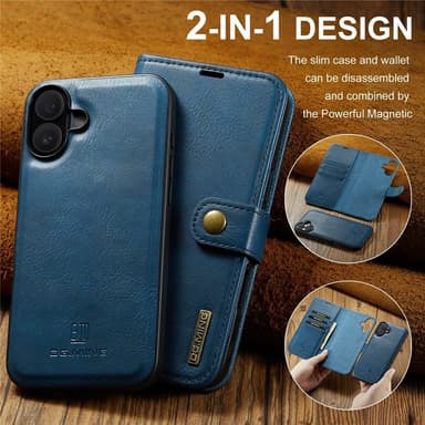 DG MING iPhone 17 2-i-1 Magnet Plånboksfodral - Blå
