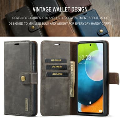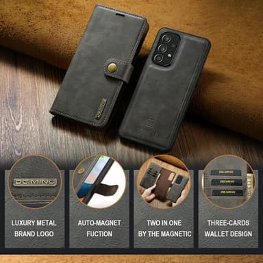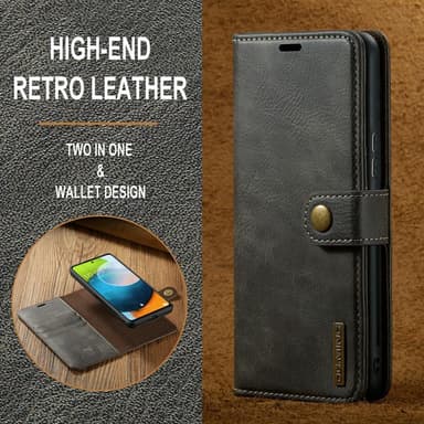 Ett plånboksfodral i läder med magnetiskt avtagbart innerskal.