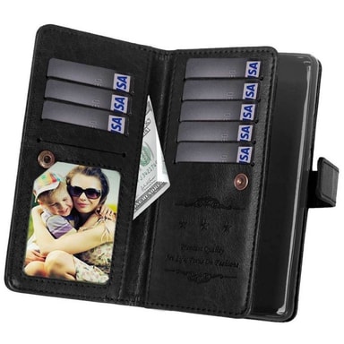 Mobilplånboken är konstruerad med utskärningar för volymknappar, högtalare, mikrofon, kamera och laddningsuttag etc...