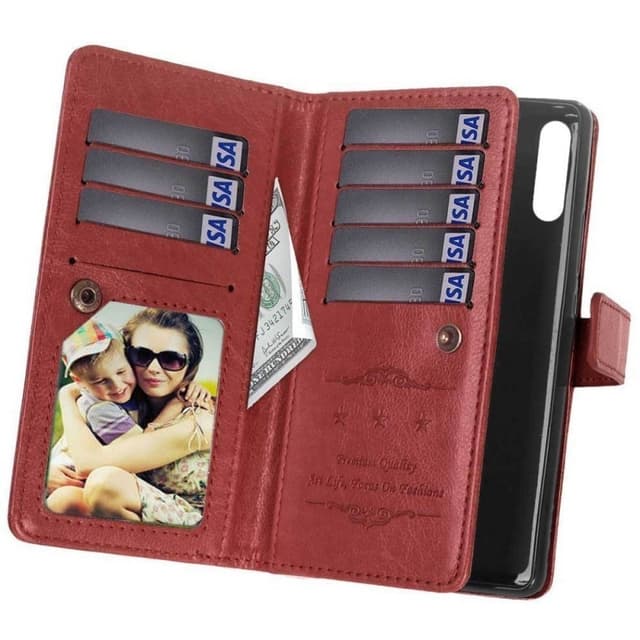 Mobilplånbok Dubbelflip 9-kort - Stryktålig silikon ram (flexi) håller telefonen på plats. - Dolt magnetlås håller mobilplånboken stängd. - Kortplatserna stängs med ett knapplås. - Slät sida som skyddar telefonens display. Specifikationer                    Färg: Svart, brun, röd, rosa, vit, ljusblå Antal kortplatser: 9st (varav 1 fotoficka) Antal sedelfack: 2st Fotofickor:1st Övrigt: Hål för handledsrem Passar: Xiaomi Mi 9 Modellnr: Mi 9 (6.39"") Material: PU läder