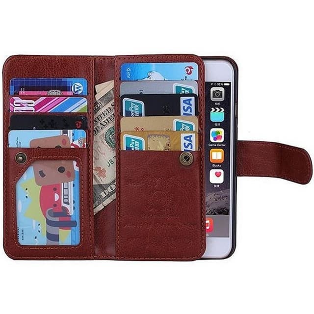 Detta plånboksfodral är konstruerat med plats för hela 9 kreditkort varav en fotoficka. Kortplatserna stängs med ett knapplås, 3 sedelfack. Baksidan av kreditkortsfacken är slät som skyddar din display.