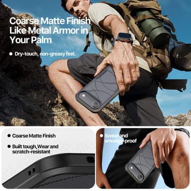 Det avtagbara dubbellagerskalet har en UV-tryckt baksida med en djärv topografisk design som ger ett unikt och stilrent utseende. Med 36 inbyggda neodymmagneter i en exakt ringformad struktur säkerställs snabb och stabil MagSafe-laddning samt kompatibilitet med alla magnetiska tillbehör.