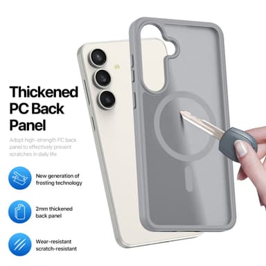 Upplev en oslagbar kombination av komfort och stil med detta skal. Den mjuka TPU-kanten ger ett skönt grepp, medan den matta PC-baksidan känns behaglig mot huden. Skalets starka magneter gör det kompatibelt med MagSafe, vilket ger snabb och enkel laddning. Den förstärkta designen skyddar din telefon mot repor och fall, samtidigt som de upphöjda kanterna runt skärmen och kameran ger extra skydd.
