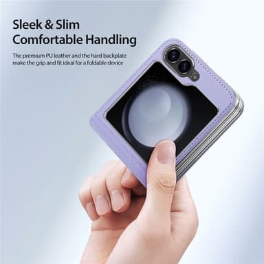 Bril Series är ett elegant och funktionellt mobilfodral som kombinerar stil med praktisk användning. Det är tillverkat av exklusivt PU-läder och en hård bakplatta som ger ett bekvämt grepp, särskilt anpassat för vikbara enheter. Den innovativa ställfunktionen gör det enkelt att använda telefonen handsfree – perfekt för videosamtal eller filmvisning. Ett separat kortfack gör det smidigt att bära med sig ett kreditkort i vardagen. Den upphöjda kanten runt kameran skyddar effektivt utan att påverka bildkvaliteten. Fodralets folio-design ger ett heltäckande skydd mot stötar och repor, inklusive telefonens känsliga gångjärn.