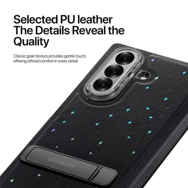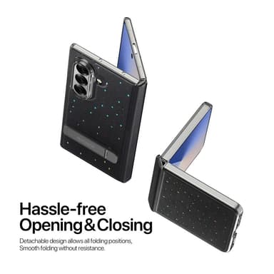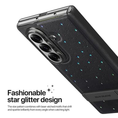 STEX Series Glittery PU-Läder skal med Skärmskydd kombinerar stil och funktion i ett elegant skydd. Det glittrande PU-lädret med stjärnliknande laserdesign reflekterar ljus från alla vinklar och ger ett unikt utseende. Det hårda PC-materialet och den ergonomiska formen med rundade hörn ger ett bekvämt och säkert grepp. Den delade konstruktionen möjliggör smidig vikning utan motstånd. Ett härdat glas framtill med mjuk insida skyddar både skärm och baksida mot repor och stötar. Det inbyggda stället erbjuder flera visningsvinklar, både vertikalt och horisontellt – perfekt för videosamtal och mediatittande.