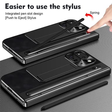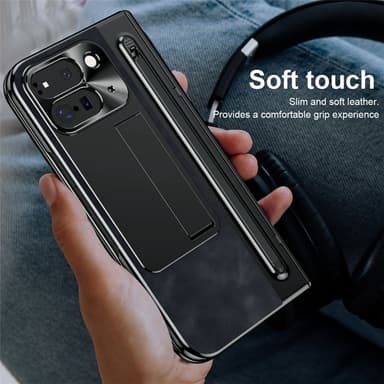 För Google Pixel 10 Pro Fold-skal Pennfack Stativ Telefonskal med härdat glasfilm, stylus - Svart【Premiummaterial för överlägset skydd】 Tillverkat av PU-läder och PC, erbjuder detta fodral en kombination av stil och stabilitet【Förbättrat linsskydd】 ULäs mer om produkten