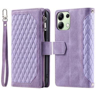 • För Xiaomi Redmi 15C Zipper Wallet Case Rhombus Stitching Line Telefonfodral