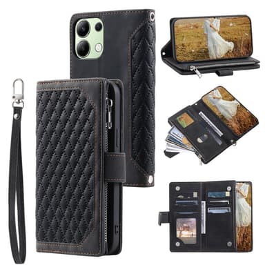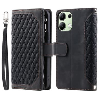 • För Xiaomi Redmi 15C Zipper Wallet Case Rhombus Stitching Line Telefonfodral