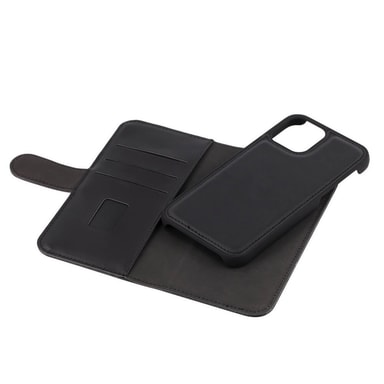Plånboksfodral i PU läder där din smartphone fästes i plånboken i ett integrerat skyddande avtagbart skal av plast. Skalet fästes på plats med hjälp av inbyggd magnet. Tre fack med plats för kreditkort och körkort samt ett utrymme för sedlar. Fodralet stängs med magnetlås. Telefonen fungerar precis som vanligt när den är monterad i skalet.