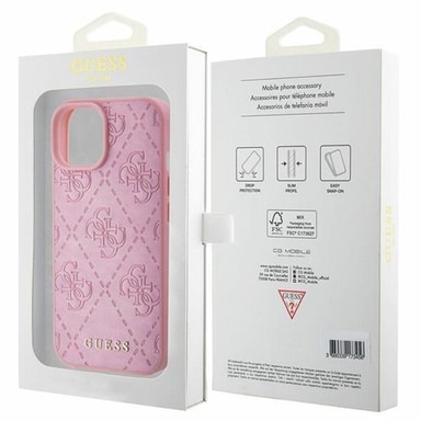 Det unika med denna kollektion betonas av det delikata ekologiska lädret som täcker enhetens baksida - det ger denna kollektion ett elegant utseende och en lyxig karaktär. Eko-lädret är behagligt att ta på och ger ett säkert grepp, och är unikt tack vare det präglade klassiska 4G-motivet som detta respekterade modehus är känt för. Denna sofistikerade kollektion kompletteras med en subtil guldlapp med Guess-logotypen, som sticker ut från hela designen och framhäver dess exklusiva karaktär, samt bekräftar produktens äkthet.