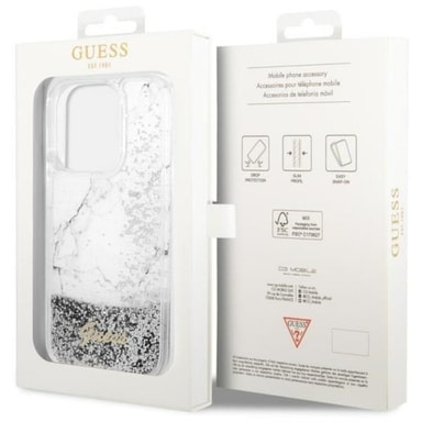 Guess iPhone 14 Pro Mobilskal Liquid Glitter Marble - Vit