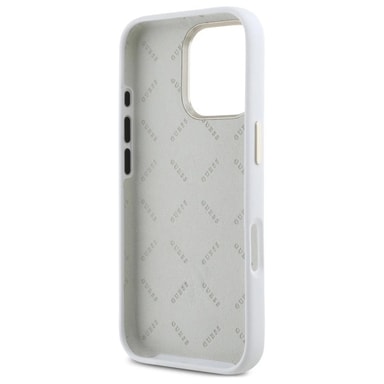 Guess iPhone 16 Pro Mobilskal Silikon Logo Strass 4G - Vit