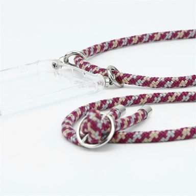 SKYDD: TPU-silikonfodralet skyddar mobilens kanter och hörn. De högkvalitativa karbinhakarna håller telefonen väl fast på det rivningsbeständiga repet. Fodralet är robust och hålls på plats med tryckknappar.