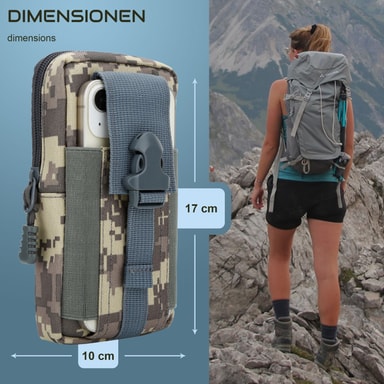 Väskan är tillverkad av högkvalitativ, stänksäker och nötningsbeständig polyester och är robust och skyddar dina enheter från repor och skador. Den kamouflagemönstrade designen ger väskan en snygg, militär design som matchar din friluftsutrustning.