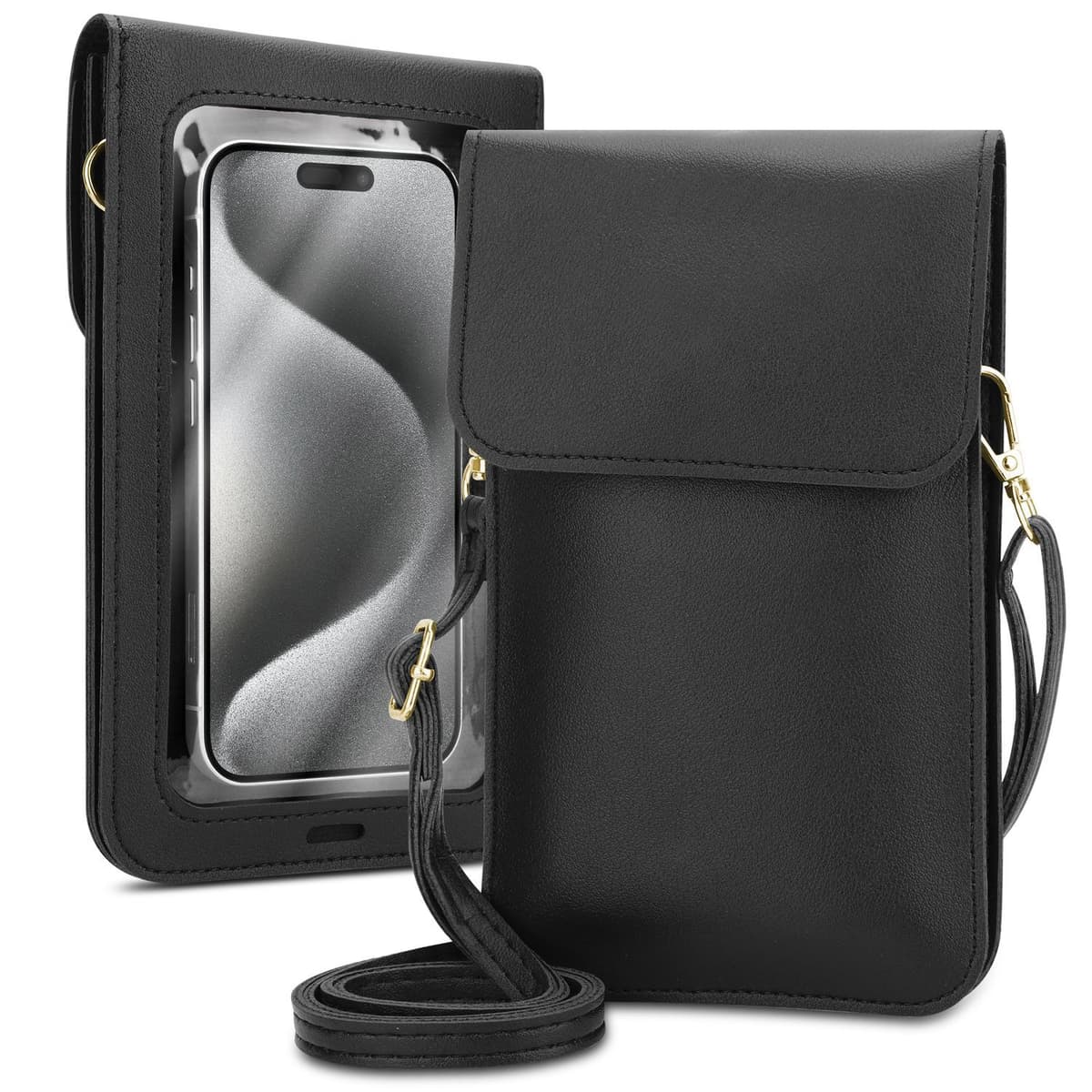Mini mobilfodralet med 2 extrafack för kort och kontanter är perfekt för vardagsbruk. Det genomskinliga pekfönstret gör det enkelt att använda. Den långa bärremmen är dessutom justerbar och avtagbar.
