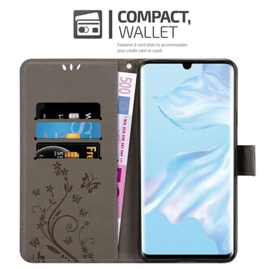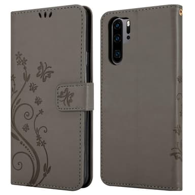 Huawei P30 PRO Plånboksfodral Skal Blommor (Grå)