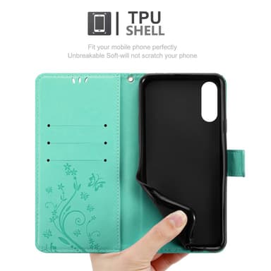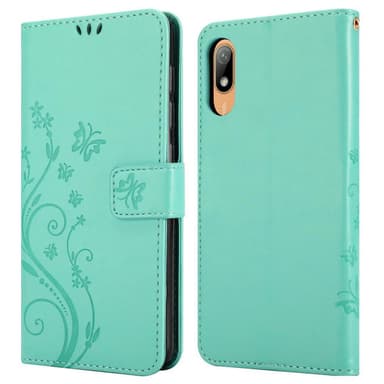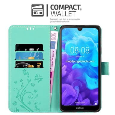Huawei Y6 PRO 2019 Plånboksfodral Skal Blommor (Turkos)