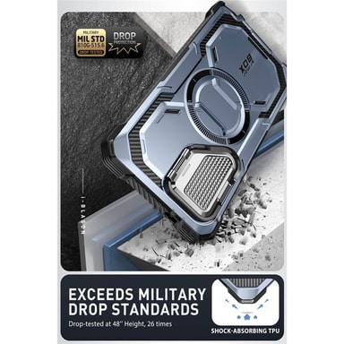 i-Blason Armorbox erbjuder optimalt skydd för din telefon. Med ett lager av mjukt stötdämpande TPU-material, hårt PC-material och kameralock av metall så är detta fodral designat för att skydda din telefon effektivt från stötar, fall och repor.