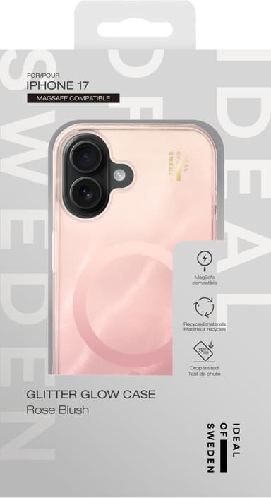 iDeal of Sweden MagSafe-skal för iPhone 17 erbjuder fallskydd från 3 meter, sömlös trådlös MagSafe-laddning och en snygg glittrig finish. Dess genomskinliga yttre är tillverkat av återvunnet material.Läs mer om produkten