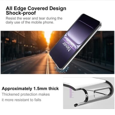 UX-10 Transparent TPU är ett miljövänligt och slitstarkt mobilskal tillverkat av flexibelt TPU-material som ger en mjuk känsla, effektiv stötdämpning och långvarigt skydd mot slitage. Den noggrant utformade designen med täckta knappar skyddar mot damm, repor och slitage samtidigt som den ger smidig knappanvändning. En avancerad ytbehandling bevarar skalets klarhet och motverkar gulning över tid. Upphöjda kanter runt kamera och skärm ger extra skydd mot repor och stötar. Den kristallklara designen framhäver telefonens ursprungliga utseende och ger ett elegant intryck.