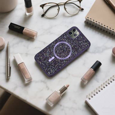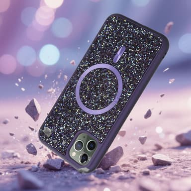 Cadorabo Glitter-fodral, kompatibelt med iPhone 11 PRO MAX, erbjuder en perfekt kombination av lyx och skydd. Den glittrande Bling-Diamant-ytan ger ett stilfullt utseende, medan den robusta konstruktionen skyddar din smartphone mot repor, stötar och slitage. Tack vare den inbyggda magnetkraften är fodralet kompatibelt med MagSafe-tillbehör, så att trådlös laddning fungerar utan problem.
